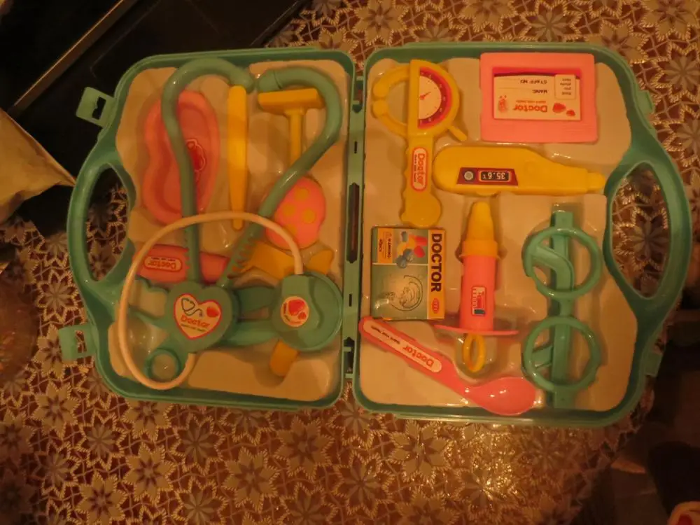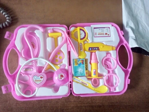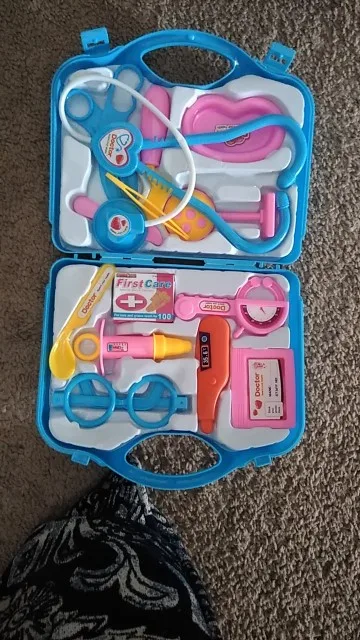Features enough medical tools for the whole junior surgical staff to operate! Made from sturdy plastic. Provides the perfect way to ease children’s anxieties about doctor visits. The plastic carrying case has a place for everything and provides great storage. This play set includes:
